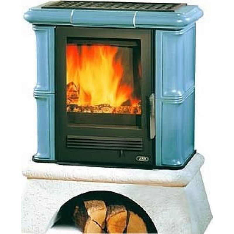 ABX Bavaria K TV výměník 4,2 kW, kachlová kamna na dřevo, selský sokl, modrá