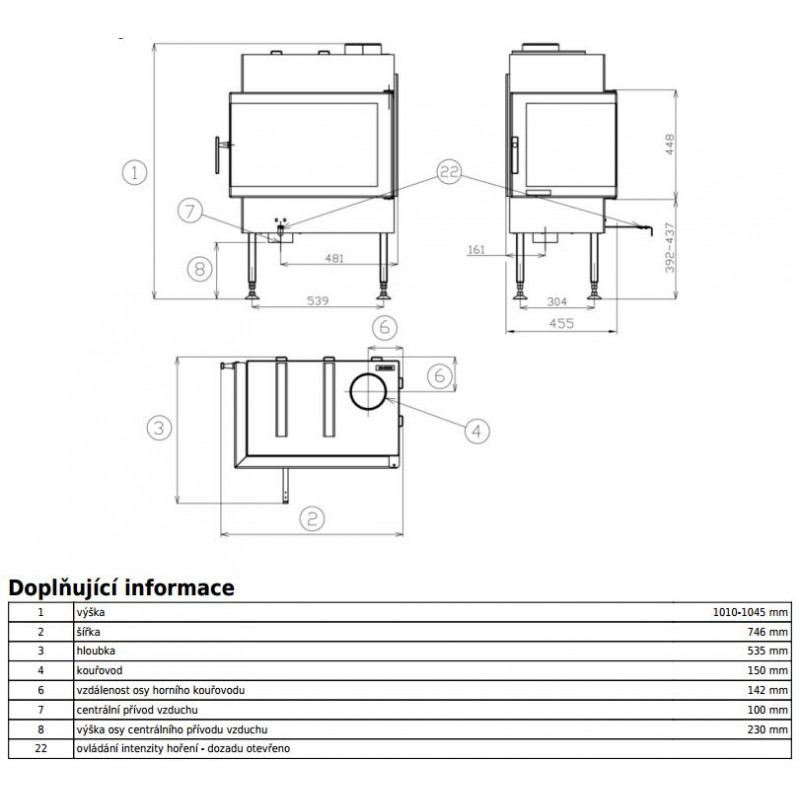 ABX Cardif levá krbová vložka na dřevoTechnické parametry: