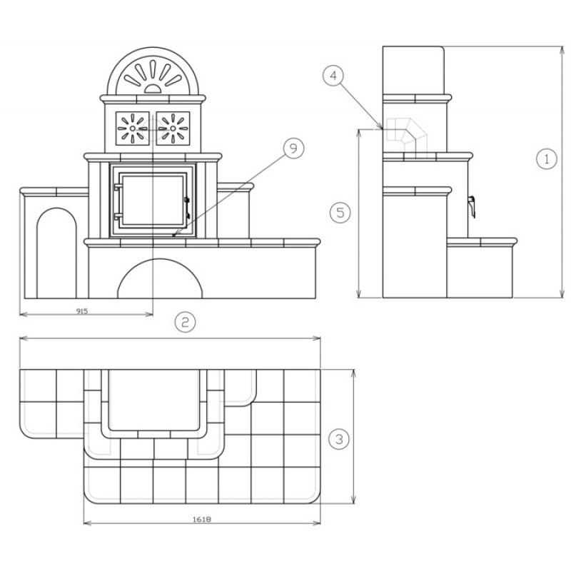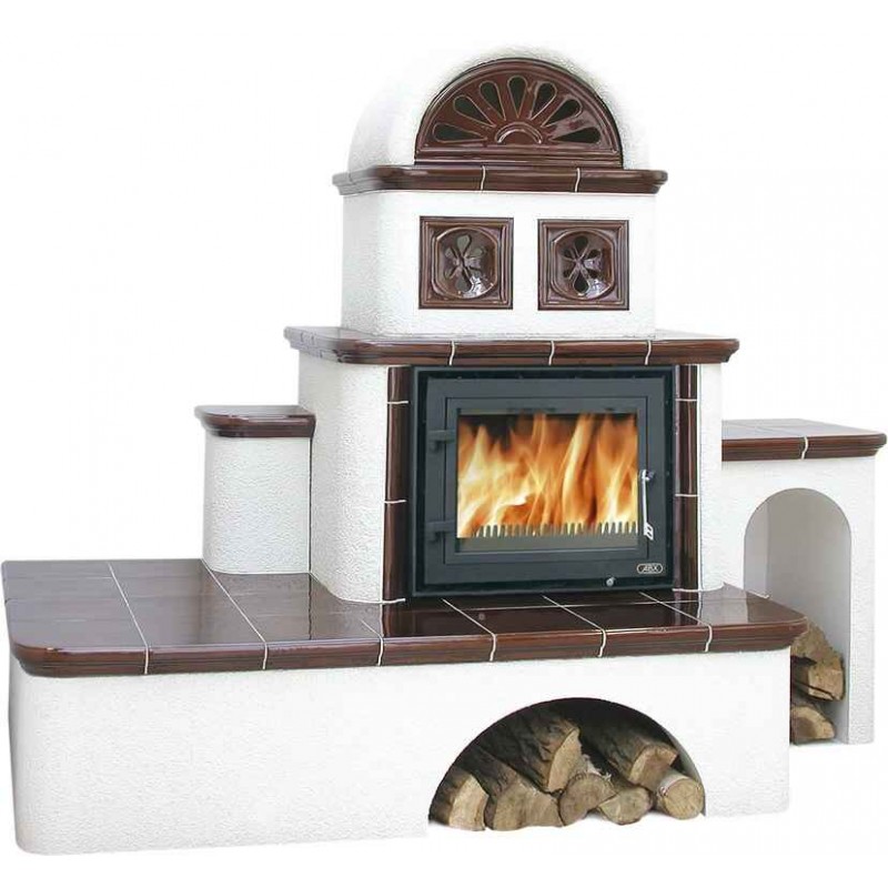 ABX Glasgow, Kachlová pec, kachlová kamna na dřevo s plechovou vložkou, pravé, hnědá