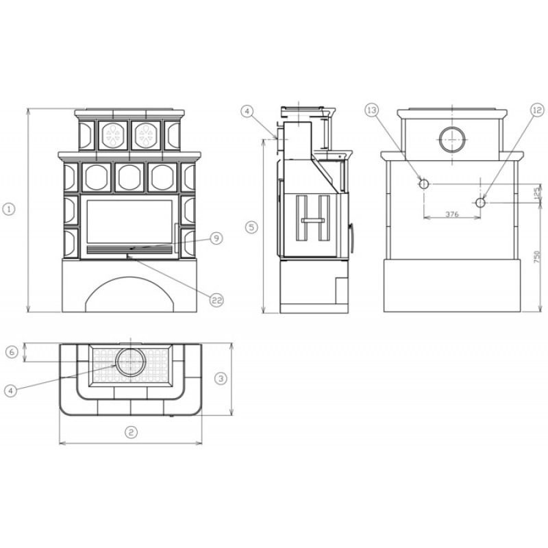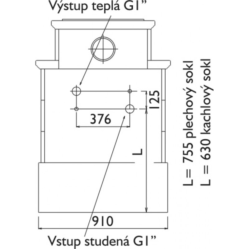 Vzdálenost osy horního kouřovodu (mm): 125