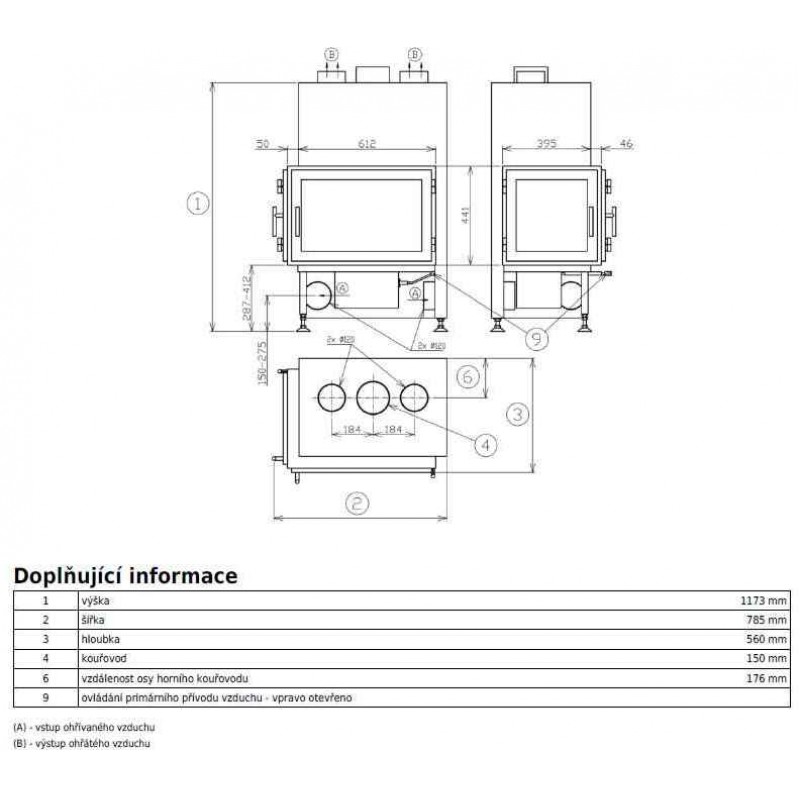 ABX London, Krbová vložka na dřevo, plech, praváJmenovitý výkon (kW): 14