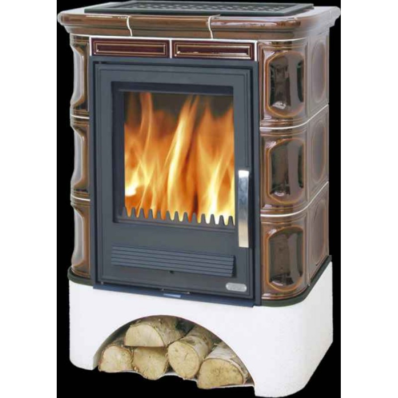 ABX Marina I. K, kachlová kamna na dřevo s kombi vložkou (litina/plech), hnědá