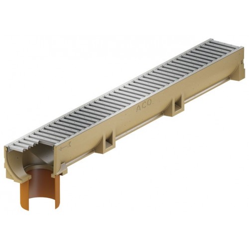 ACO EuroSelf žlab 1 m, H=10 cm, se spodním odtokem DN/OD 110, pozinkovaný můstkový rošt- Žlaby osazeny pozinkovanými rošty