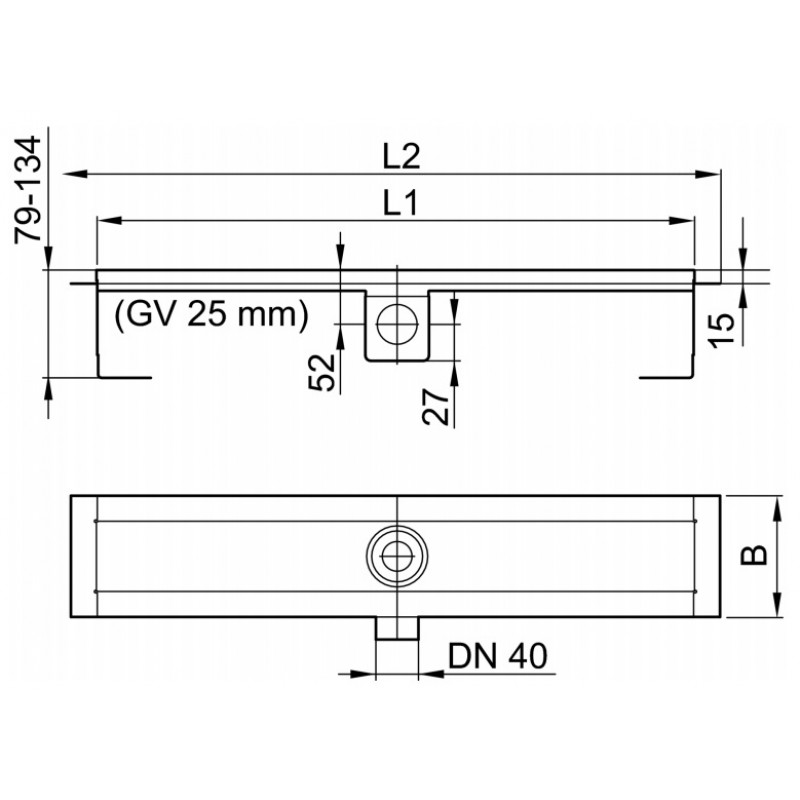 - boční nízký odtok: 79–134 mm