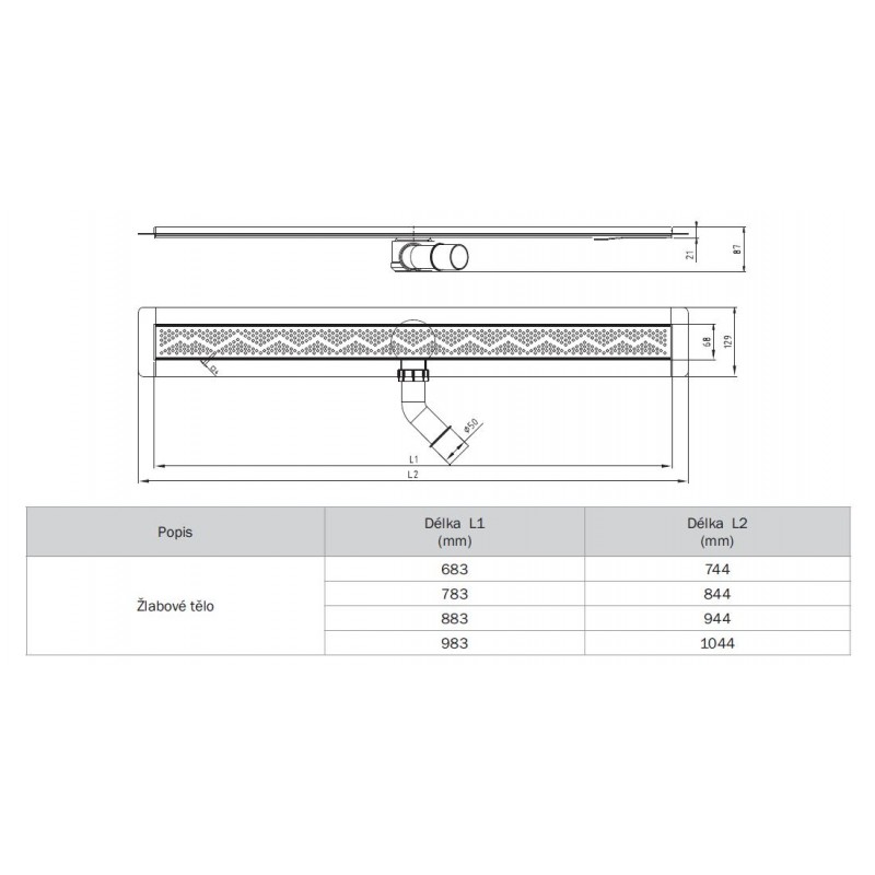 - Šířka těla žlabu: 68 mm
