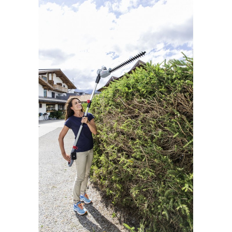 • Žací lišta z kvalitního materiálu s délkou 51 cm pro přesný a bezpečný střih. Prodloužené akumulátorové nůžky jsou obzvláště vhodné pro vysoké živé ploty – s prodlužovacím nástavcem dosáhnete pracovní výšky až 3,5 m.