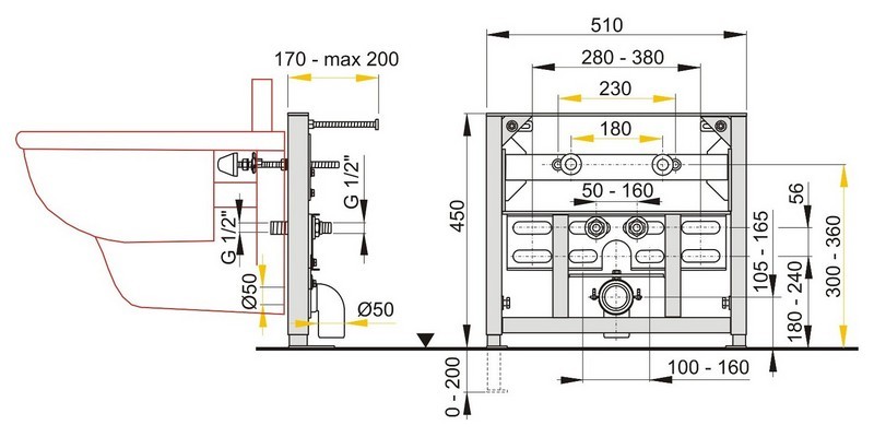 ALCAPLAST Montážní rám pro bidet - stavební výška 0,45 m A105/450* stavební výška – 450 mm
