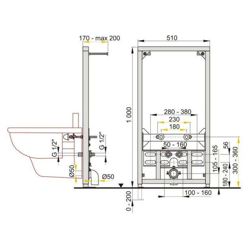 ALCAPLAST Montážní rám pro bidet - stavební výška 1 m A105/1000* stavební výška – 1000 mm