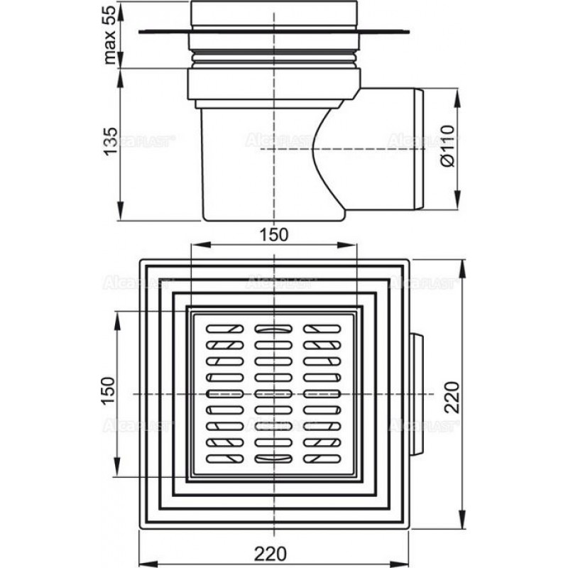 - Pre odoslanie na Slovensko navštívte ALCAPLAST Podlahová vpusť 150 × 150/110 bočný odtok, mriežka nerez APV12