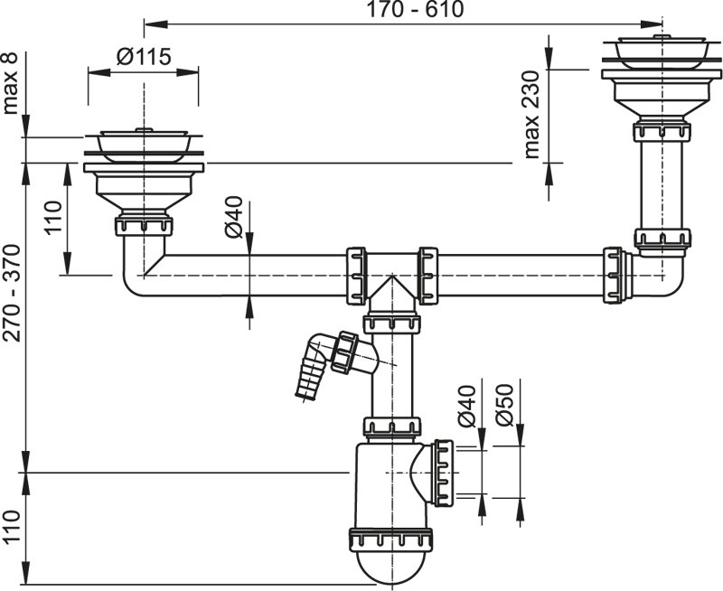- Magyarországra történő szállítás ALCAPLAST szifon kétmedencés mosogatóhoz, leeresztővel DN115 kétszintű csatlakozóval A454P