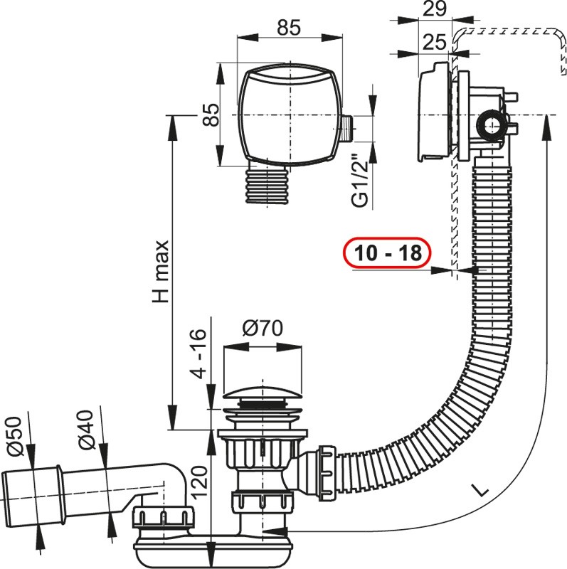 - Pre odoslanie na Slovensko navštívte ALCAPLAST Sifón vaňový click/clack s napúšťaním prepadom pre hrubost.vane kov/chróm 120cm
