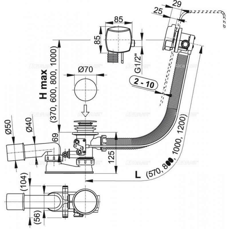 - Pre odoslanie na Slovensko navštívte ALCAPLAST Sifón vaňový s napúšťaním prepadom pre hydromasážne vane kov A566-273133