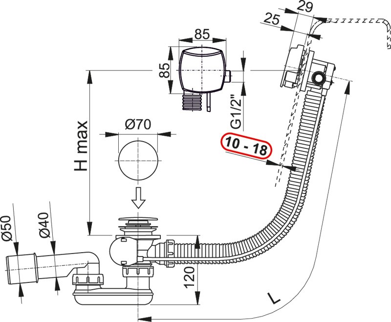 - Um nach Österreich zu versenden, besuchen Sie ALCAPLAST Ablaufgarnitur für dickwandigen Badewannen mit Überlauf, chrom L80cm, A565CRM180
