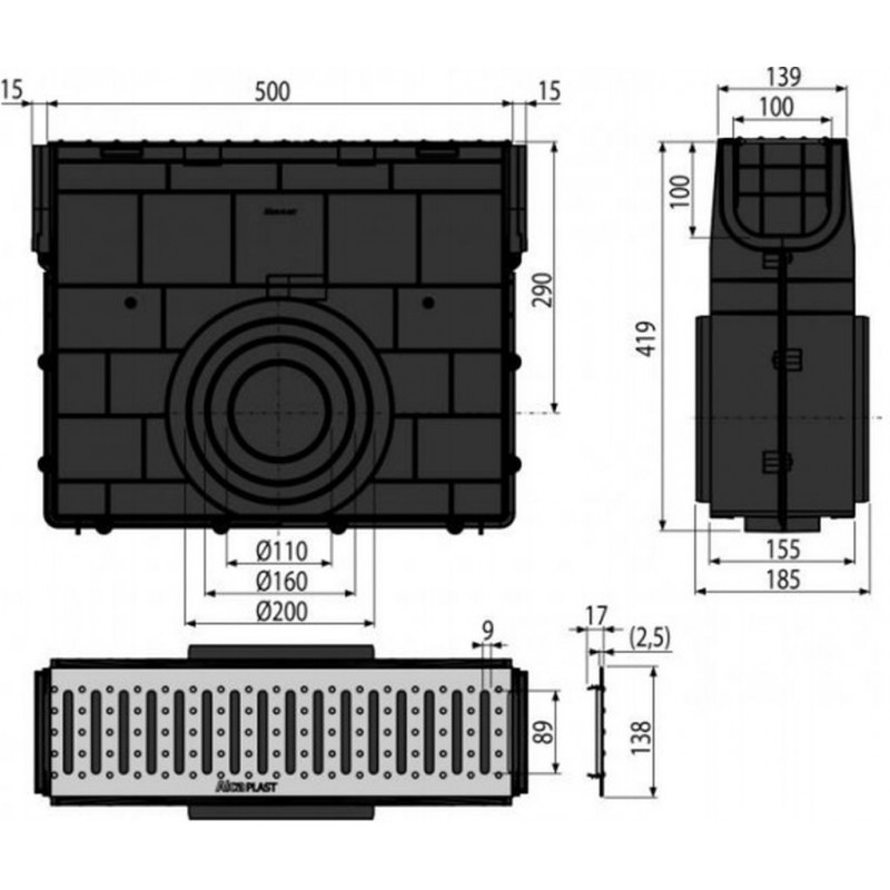- Pre odoslanie na Slovensko navštívte ALCAPLAST Venkovní žlabových vpusť bez rámu s pozinkovaným roštem "T" profilu A15