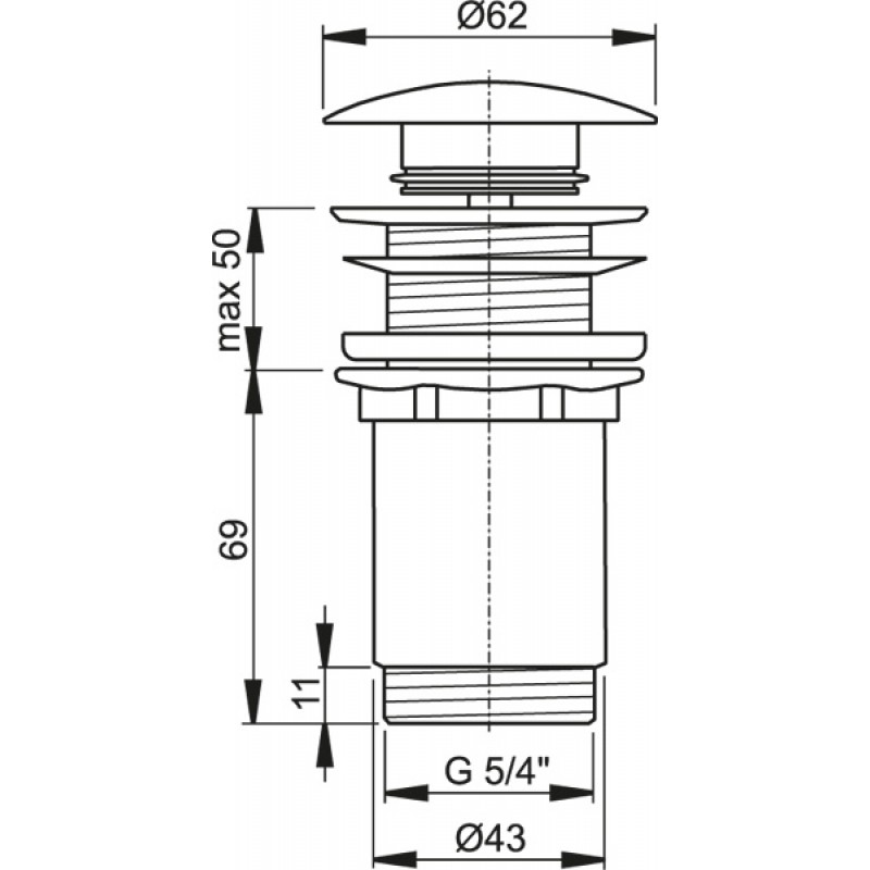 ALCAPLAST Výpust umyvadlová click/clack 5/4" celokovová, velká zátka A395