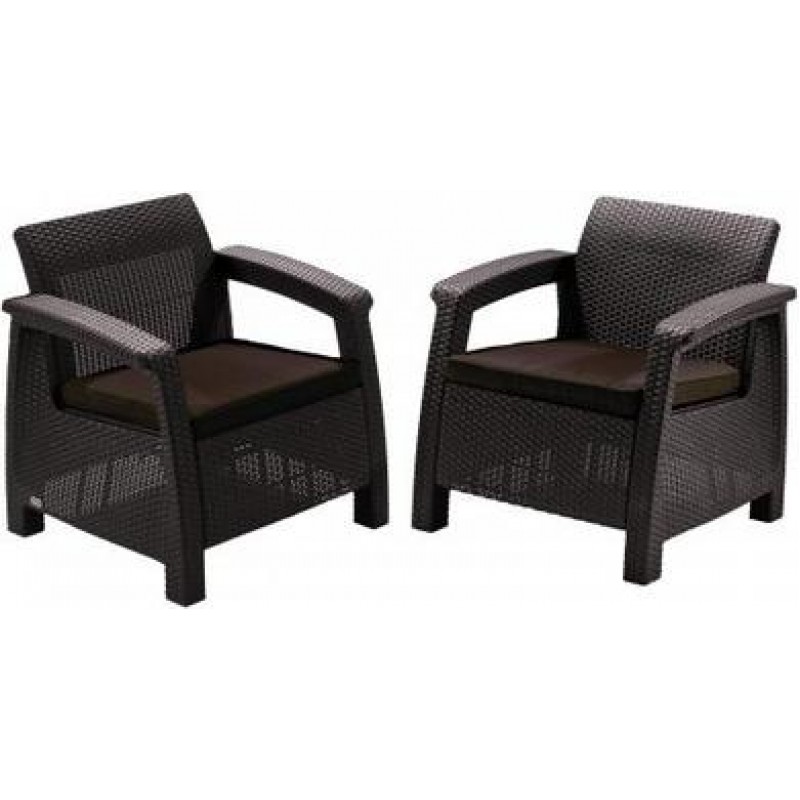 ALLIBERT CORFU DUO Set křeslo 2 ks, hnědá/čokoládová 17197993Moderní křesla z lisovaného plastu v imitaci plochého umělého ratanu.