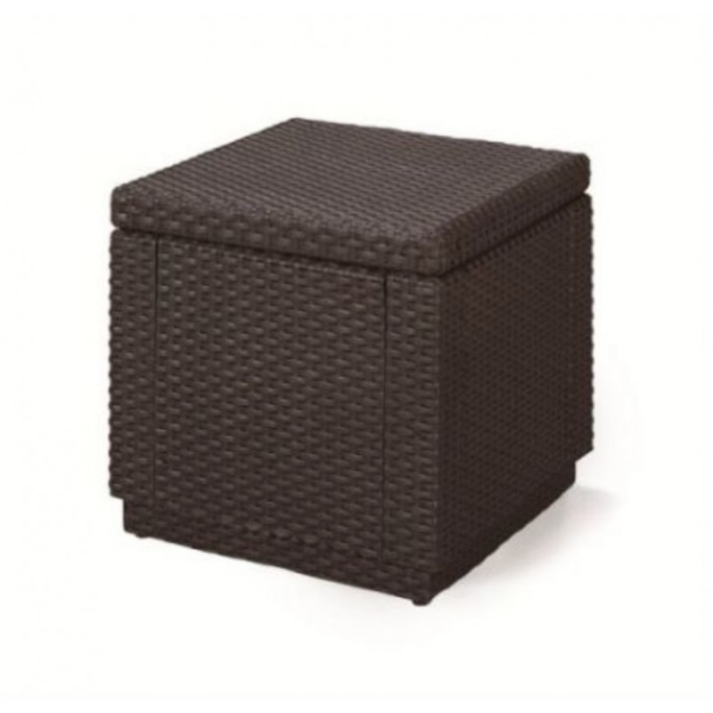 ALLIBERT taburet CUBE hnědá 189448Hnědý taburet ve tvaru kostky s praktickým úložným prostorem. Vyroben z lisovaného plastu v imitaci plochého ratanu. Je vhodný pro venkovní i domácí účely.
