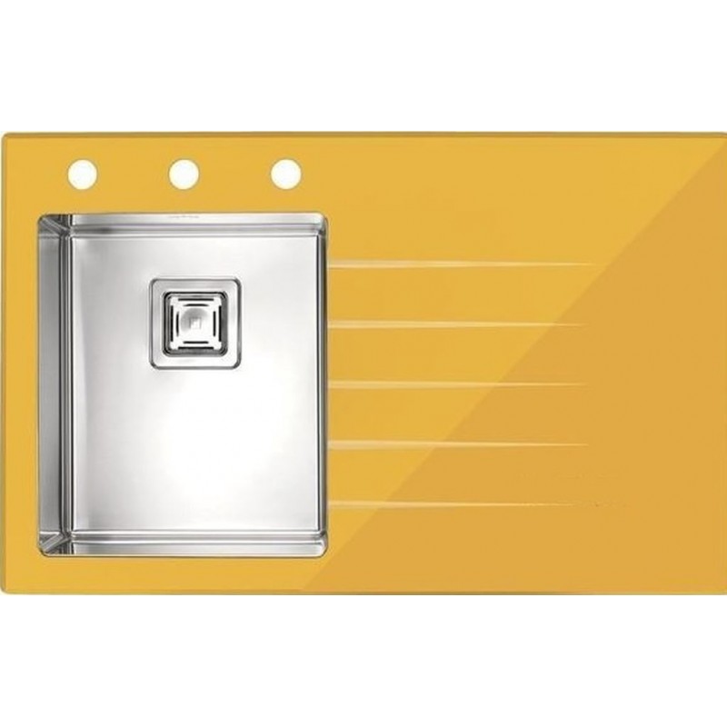 ALVEUS Crystalix 10 kuchyňský dřez nerez/sklo, 860 x 500 mm, žlutáDřezy Crystalix jsou určeny pro nejnáročnější uživatele, kteří očekávají nejen nekompromisní kvalitu, ale i pronikavý design. Dřezy Crystalix jsou k dispozici ve třech různých modelech a dvou barvách skla - bílé a černé. Jsou vyrobeny z vysoce kvalitní nerezové oceli s nadprůměrnou tloušťkou a tvrzeného skla o tloušťce 10 mm. Jejich základní vlastností je malý rádius 10 mm v kombinaci s 200 mm hloubkou vaničky, tyto poskytují poměrně zvětšenou kapacitu vaničky. Tvrzené sklo zlepšuje mechanické vlastnosti skla díky zvýšení jeho pevnosti.