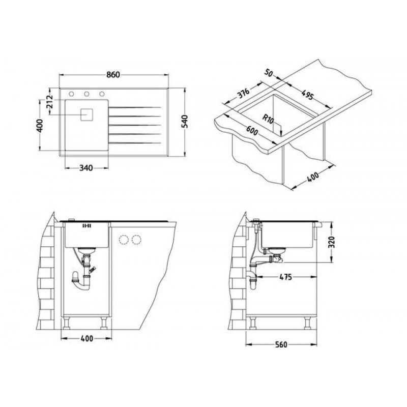 - baterie mohou být namontovány buď do dřezu nebo do pracovní desky