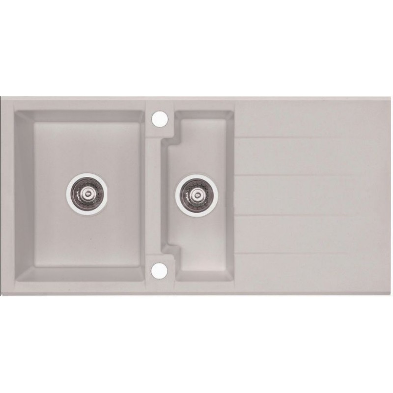 Dřez je dodáván včetně 2 otvorů (pro baterii a ovládání sítkového ventilu POP-UP)
