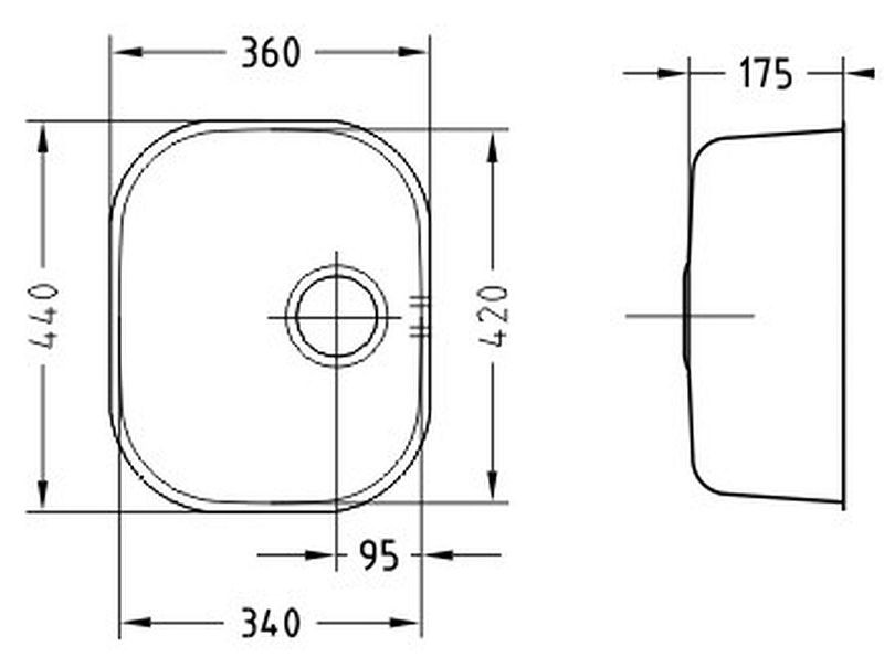 - Rozměr dřezové nádoby: 340 x 420 x 175 mm