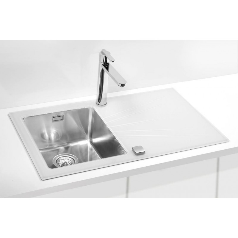 ALVEUS KARAT 10 kuchyňský dřez nerez/sklo, 860 x 500 mm, levý, bílá 1102771