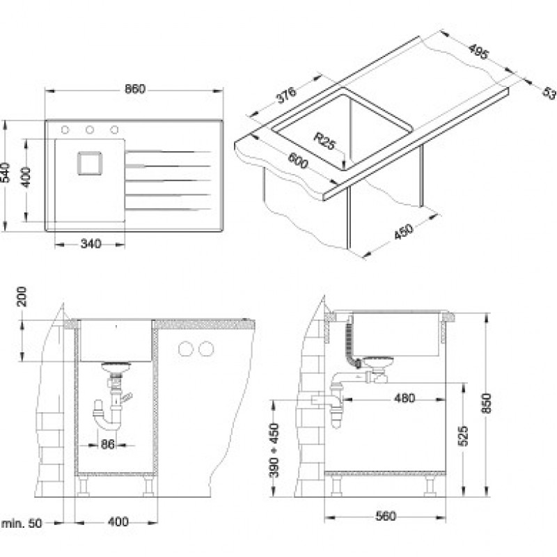 Typ instalace: vestavěný dřez