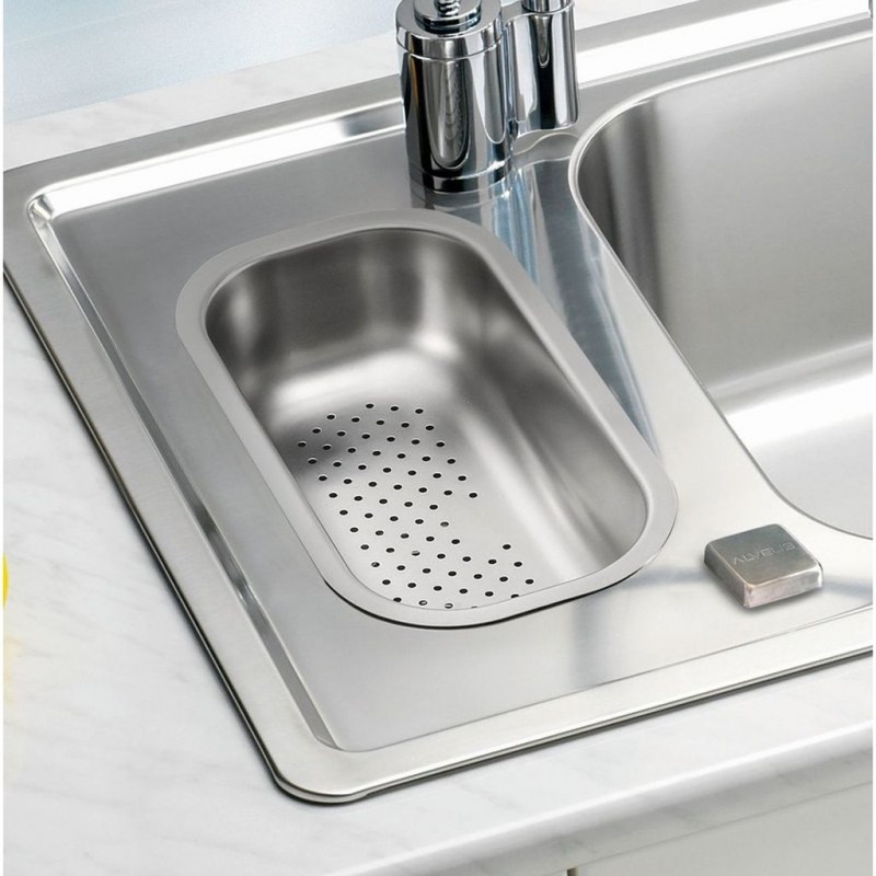Nerezová odkapávací miska Alveus s otvory pro odtok vody.