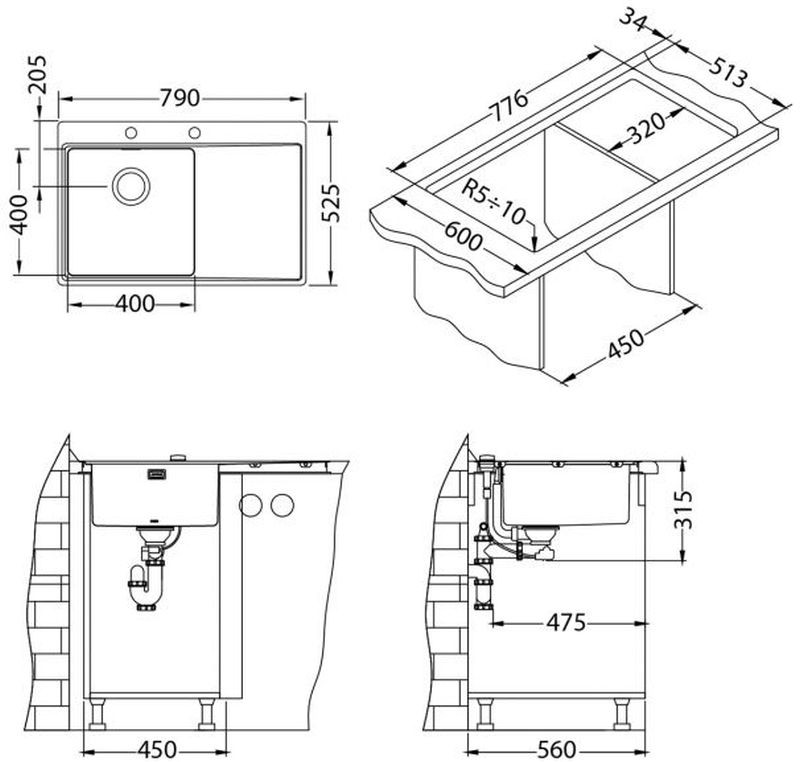 - Způsob montáže: Plně vestavěné dřezy (F) / Plošně vestavěné dřezy (S)