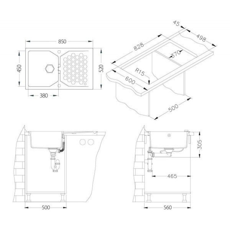 - Rozměr dřezu: 850 x 520 mm