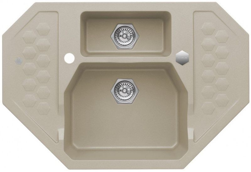 - Dřez je dodáván včetně 2 otvorů (pro baterii a ovládání sítkového ventilu)