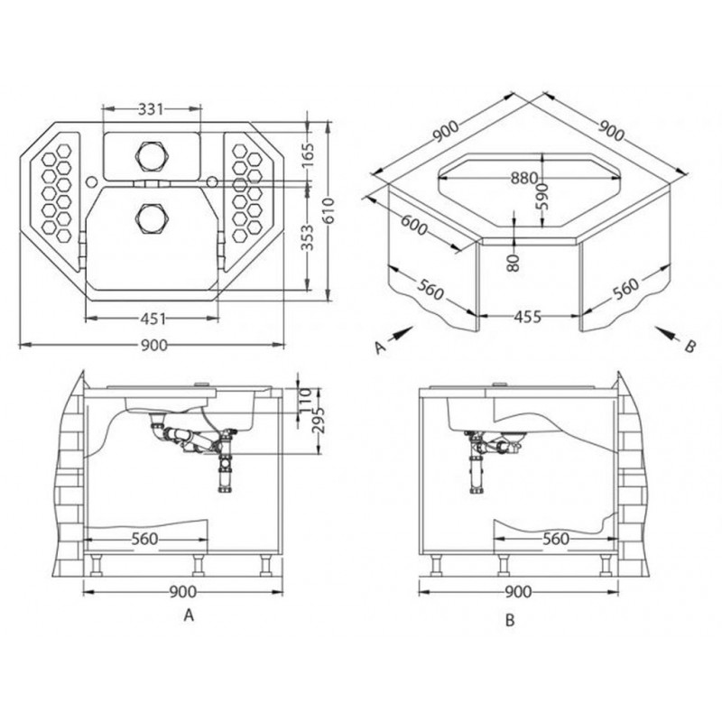 - Rozměr dřezové nádoby: 451 x 353 x 200 mm