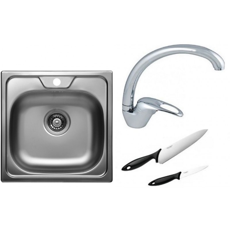 ALVEUS Set dřez ALLUX 70 nerez + baterie Diana chrom + sada nožů zdarmaRozměr: 480 x 480 mm