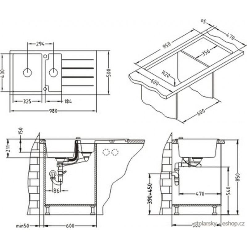 Typ montáže: vestavěný dřez