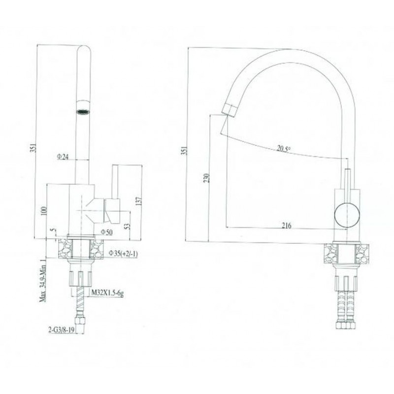 Dřez je dodáván včetně 2 otvorů (pro baterii a ovládání sítkového ventilu)