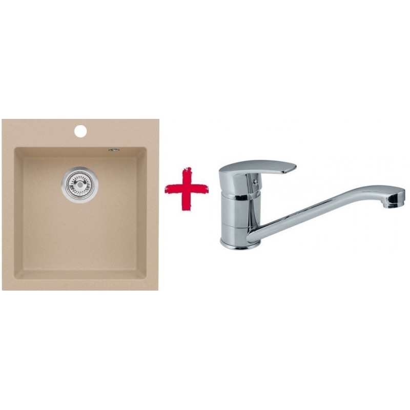 ALVEUS set dřez granitový Cortina 20 béžový + baterie Milena SAT