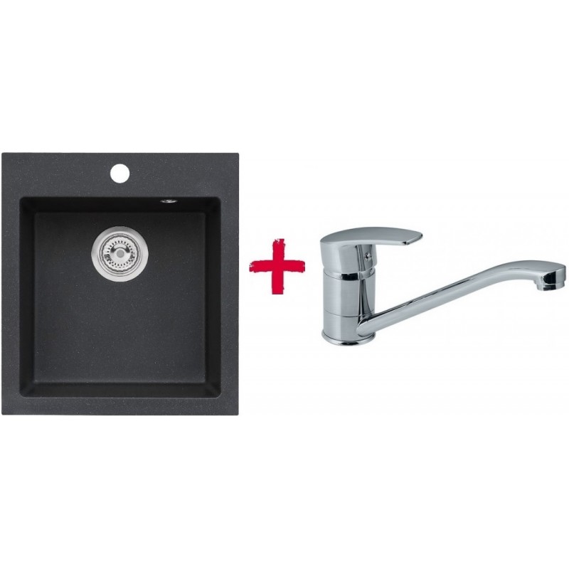 ALVEUS set dřez granitový Cortina 20 černý + baterie Milena SATDřez Cortina 20:
