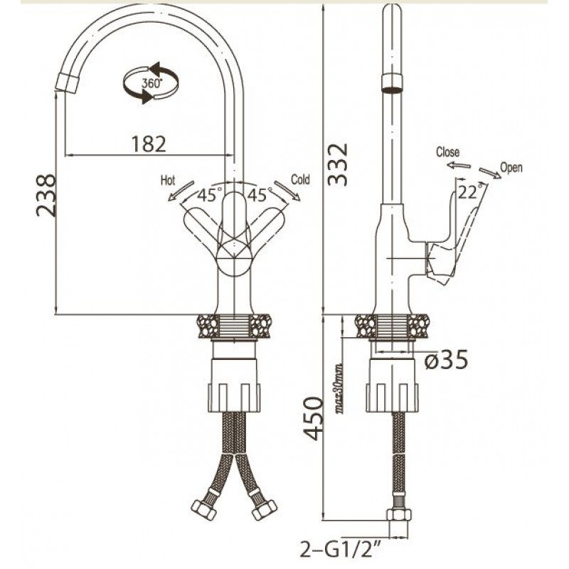 *pružné spojovací hadice zaručují dřezové baterii jednoduchou a rychlou montáž