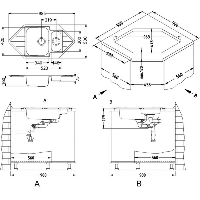 Rozměr skříňky: 600 mm, roh - 900 mm