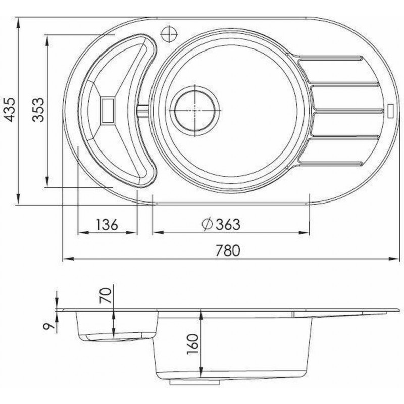 Dřez je dodáván včetně 2 otvorů (pro baterii a ovládání sítkového ventilu)