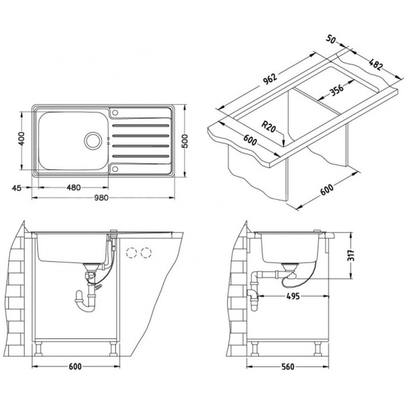 - tloušťka nerezu (CrNi) je v rozsahu od 0,5mm do 1 mm, v závislosti na cenové kategorii dřezu.