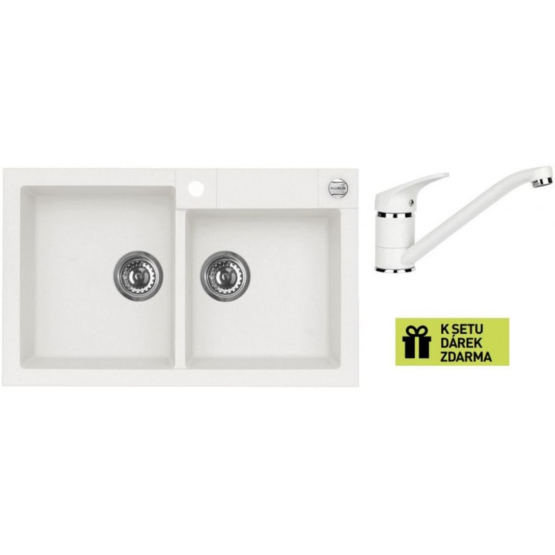 ALVEUS set dřez Rock 90 white + baterie Nina white + dárek