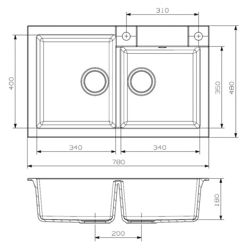 Vanička: 340 x 400 x 180 mm, 340 x 350 x 180 mm
