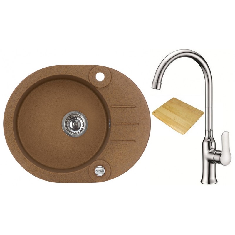 ALVEUS set dřez Roll 40 granitový brown + krájecí deska + baterie Slim chromDřez: