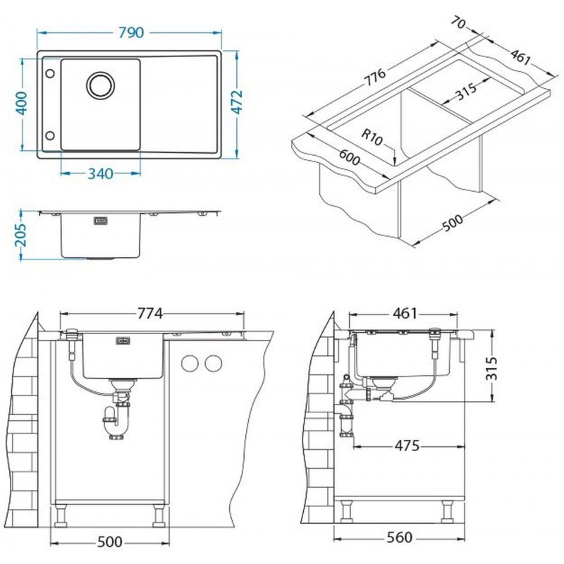 - Rozměr dřezové nádoby: 340 x 400 x 205 mm