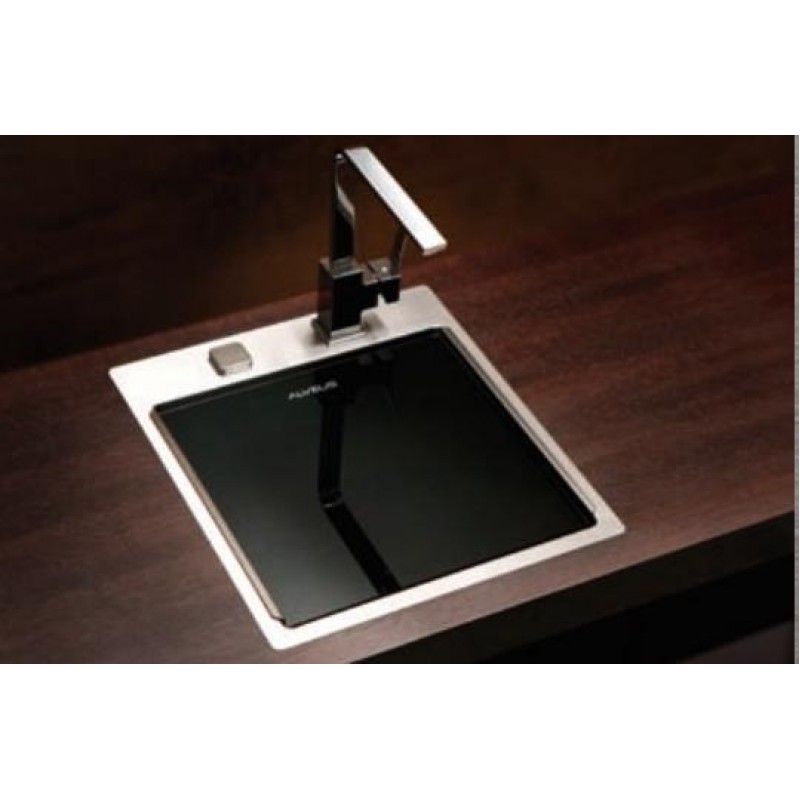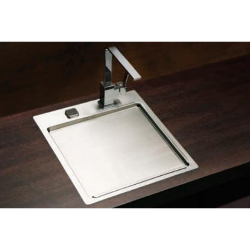 Jedinečnost dřezu a nezaměnitelný charakter je zvýrazněn čtvercovým POP-UP ovládáním.