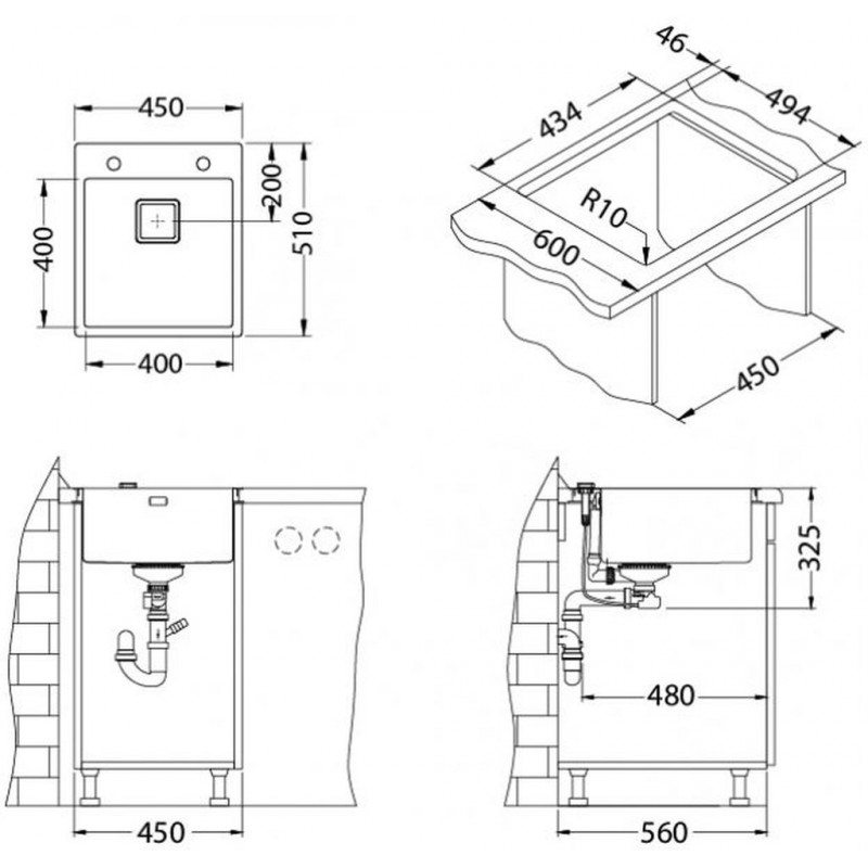 - Rozměr dřezové nádoby: 400 x 400 x 200 mm