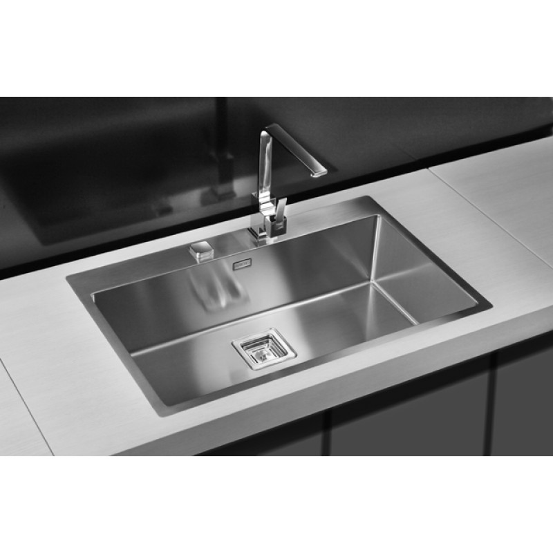 Jedinečnost dřezu a nezaměnitelný charakter je zvýrazněn čtvercovým POP-UP ovládáním.