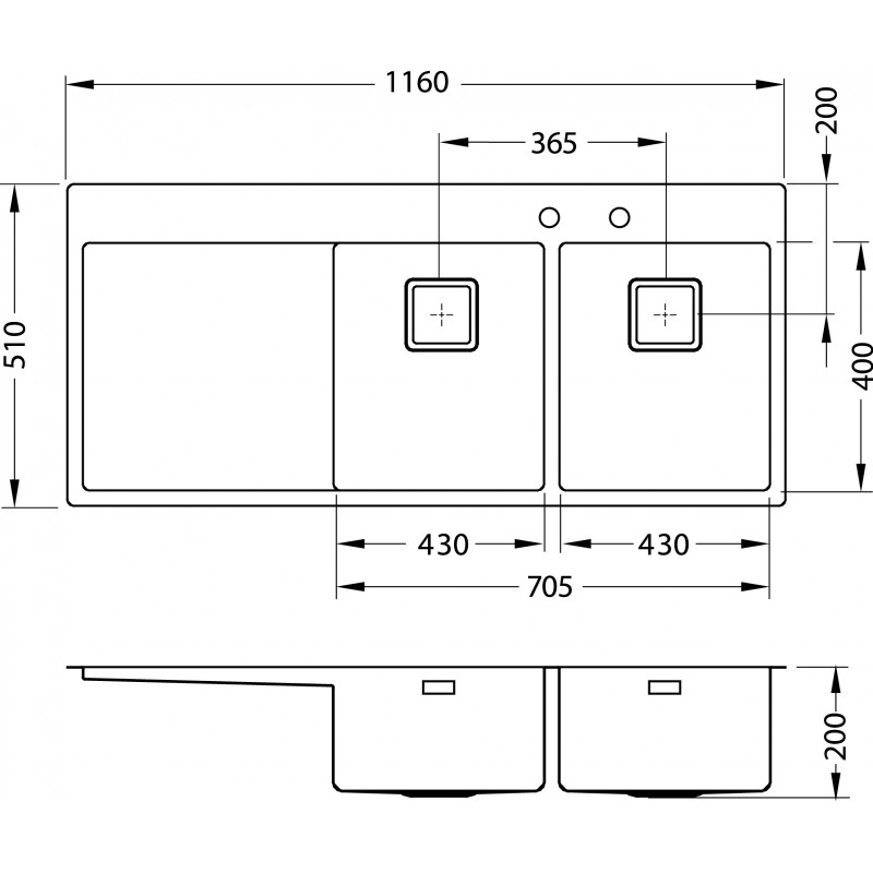 ALVEUS Stylux 70 S kuchyňský dřez nerez, 1160 x 510 mm, pravý 1084421Plošně vestavěný dřez - S*