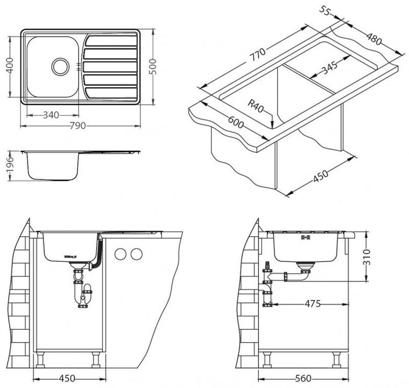 - Rozměr dřezové nádoby: 340 x 400 x 196 mm